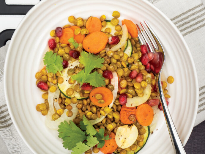 Halloumi Lentil Fattoush Salad with Tomato Vinaigrette